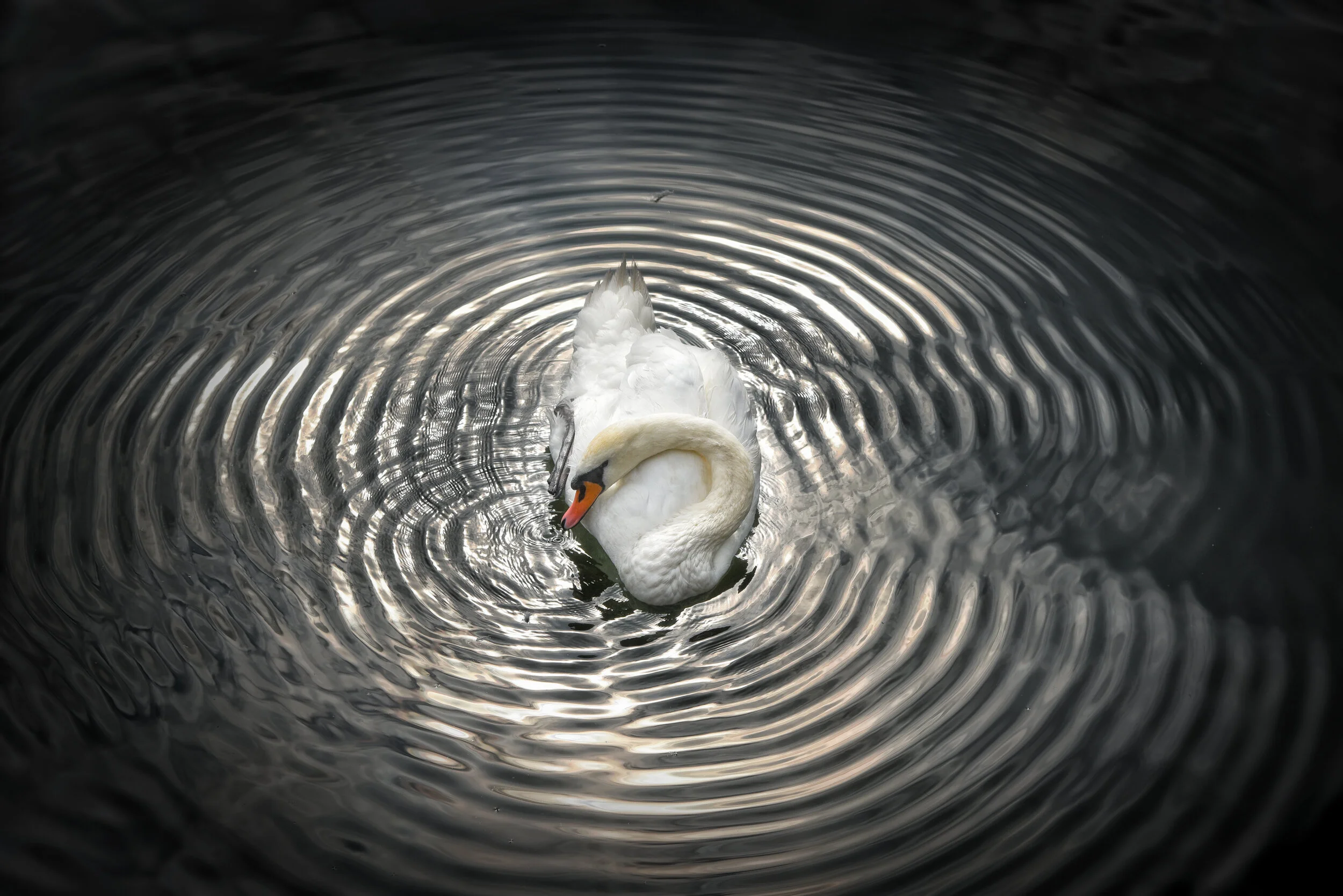 Wie so oft: ein Bild liegt ab, “reift” in den (Un)tiefen meiner Festplattenarchive still heran, und dann, irgendwann, diesmal nach fast vier Jahren, erwischt mich die Muse und das Foto wird vom Raw zum fertigen Bild, das auch hergezeigt werden darf… All die Kreise erzeugte der Schwan, nicht der Fotograf oder eine Bildbearbeitungssoftware.